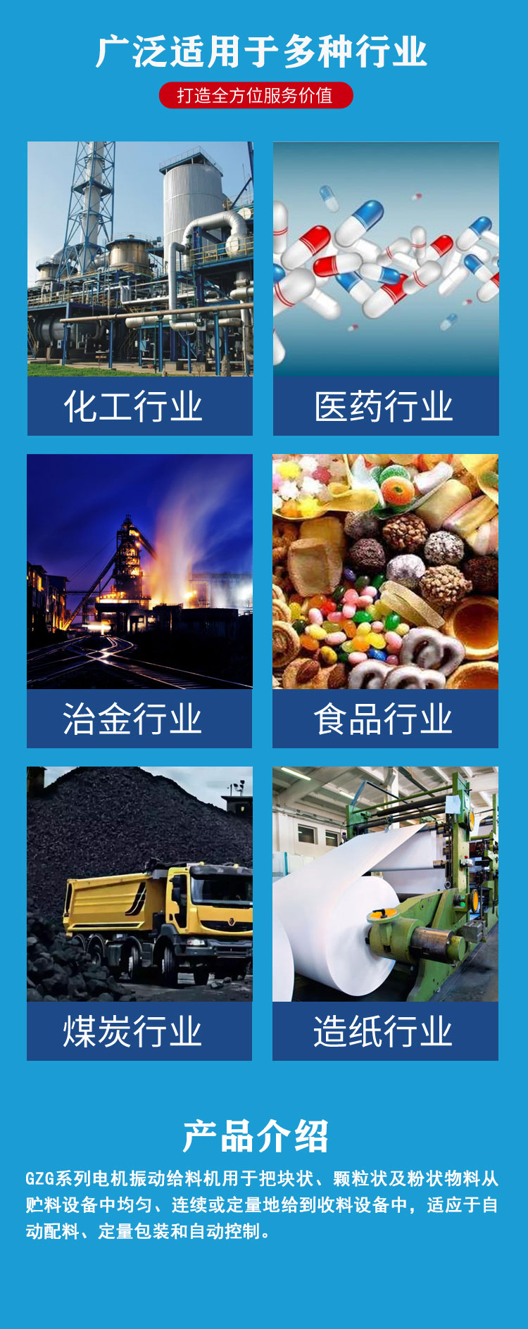 產(chǎn)品說(shuō)明:GZG振動(dòng)給料機是一種典型的非標準化的通用給料設備,有振動(dòng)電機直接驅動(dòng)和普通電機通過(guò)軟連接間接驅動(dòng)兩種驅動(dòng)方式。該機能很